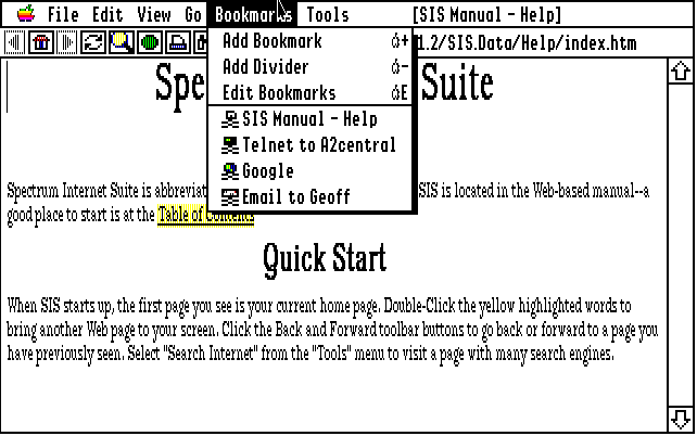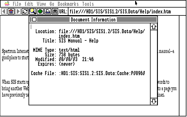 | Control-DoubleClick a link brings up the Location Information and associated operations | SIS comes with a detail-oriented set of instructions. Print out a copy for easy reference | SIS can be launched from the Finder or any other similar types of programs |