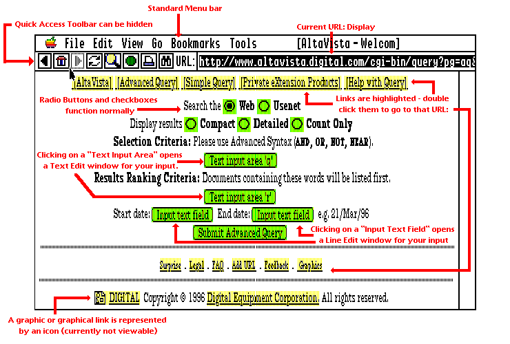 | Some form elements aren't immediately visible. Double-click the Green form button... | ...which opens up a Line Edit control in a mini window. Enter the text and close the window. | Bookmark menu shows the "eye-candy" icons next to each type of location |